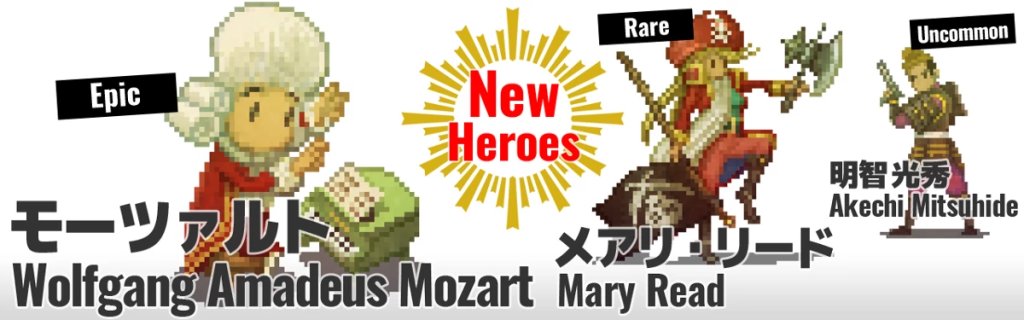 本篇介绍一下 《MyCryptoHeroes》将于5月21日开始贩卖的新英雄——莫扎特、玛丽里德、明智光秀!