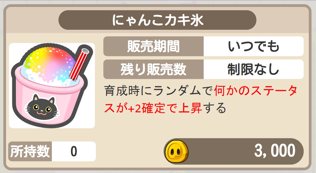 购买了上述那些特别猪会附有福利道具——对于养成而言十分重要的雪融猫刨冰。