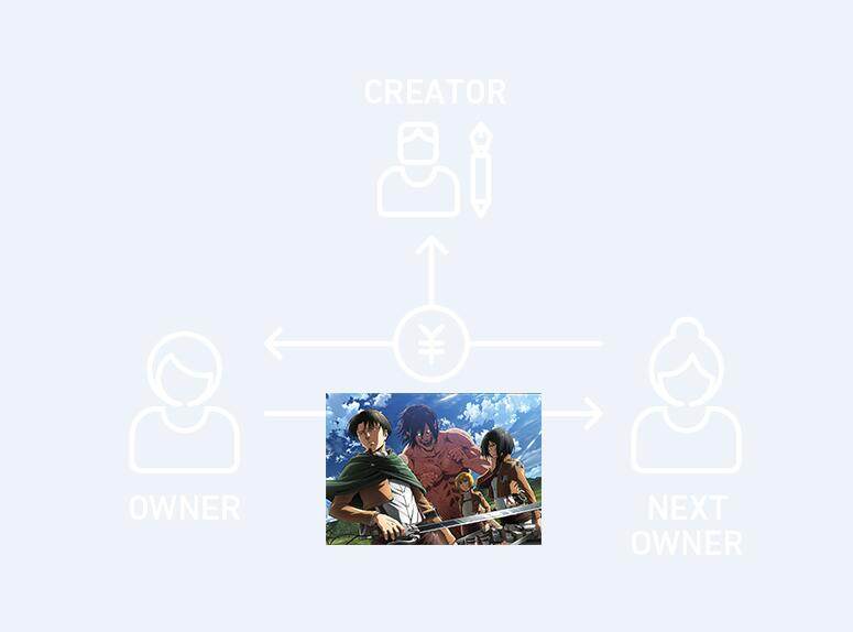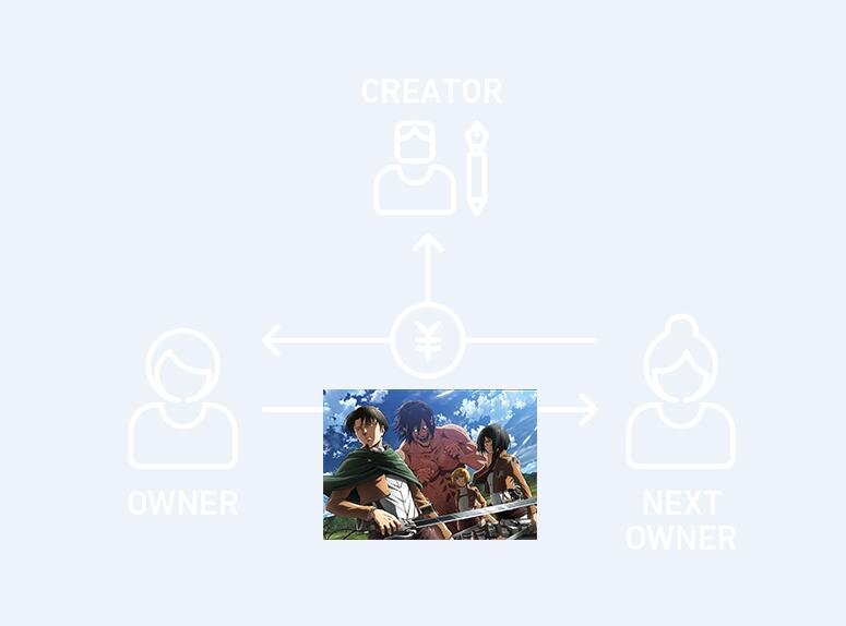 即使版权所有者后来又将产品转卖了,也依旧会在区块链上留下身为历届所有者之一的证明。(著作权仍由创作者或制作委员会拥有。)