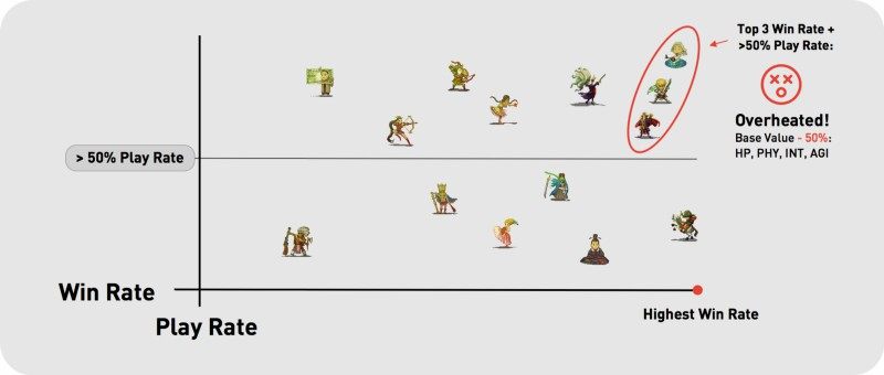 Overheat:Overheat状态的英雄的基础参数(HP、PHY、INT、AGI)降低50%