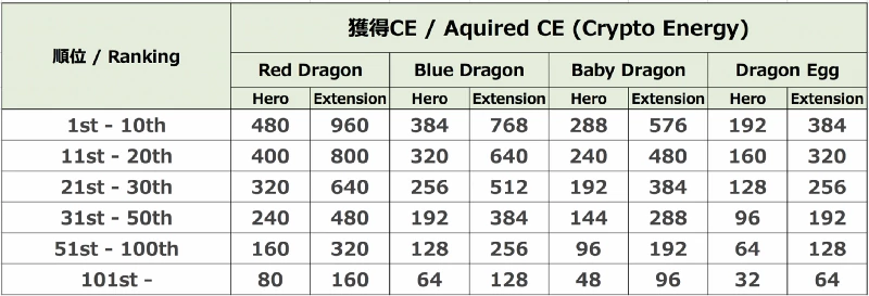 胜利时可以获得的CE量会根据各个决斗以及排名相异。