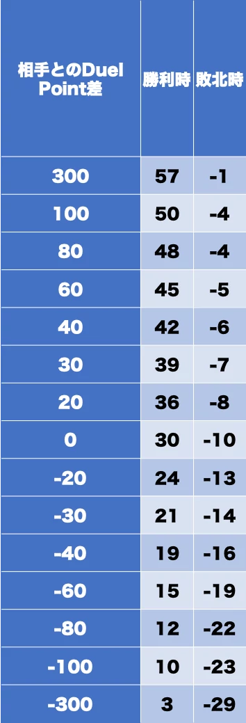 对方的决斗点差异是根据固定显示的点数计算的。(也就是说,对于相同的对战对手,其5分钟之内无论何时进行战斗,条件也不会改变)