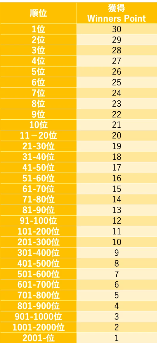 根据累计获得点数,能够参加年末年初举办的Winners Point Ranking上位100限定的“King Dragon”和限定开放的WP特别节点。