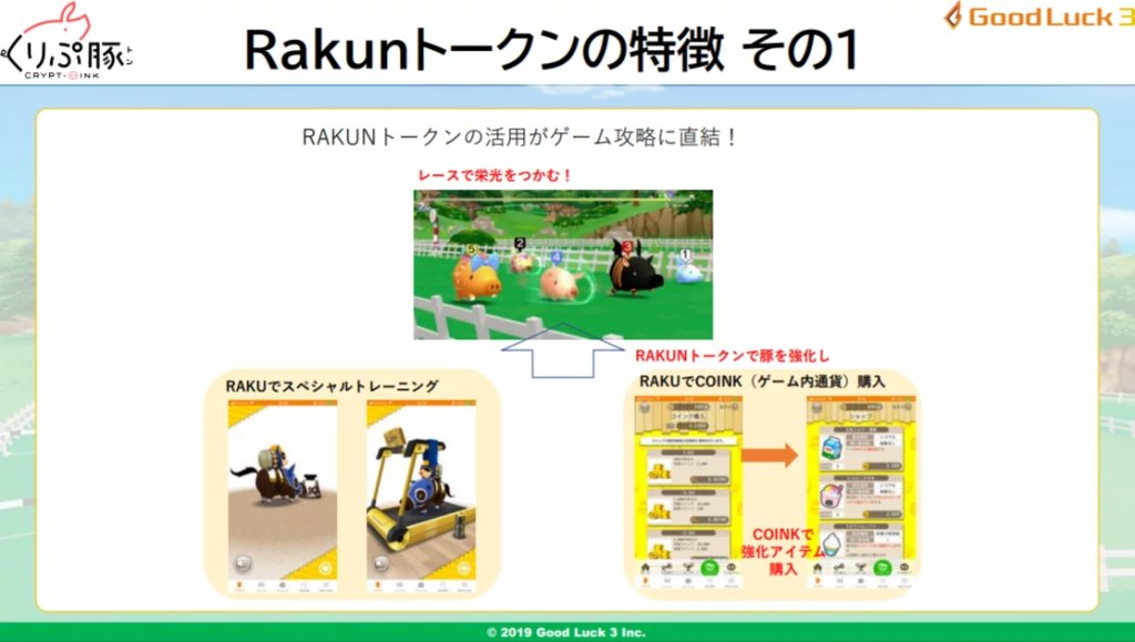 通过活用这个RAKUN代币,可以购买小猪和强化道具,也就是可以使用与游戏攻略直接相关的内容。