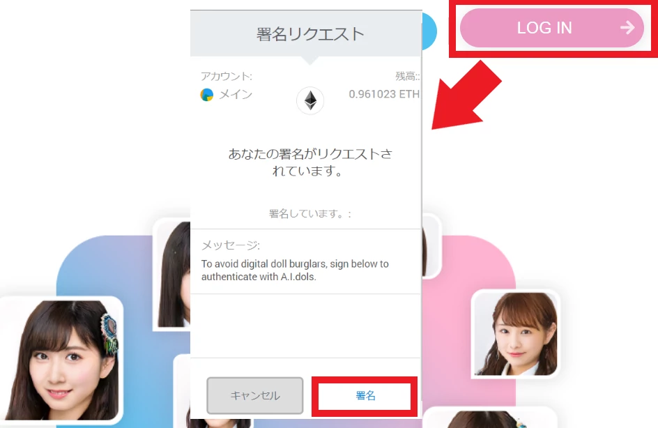 连接完网络并且有测试用ETH之后,访问A.I.dols Codebase官方网站,从上方的LOG IN开始进行关联。
