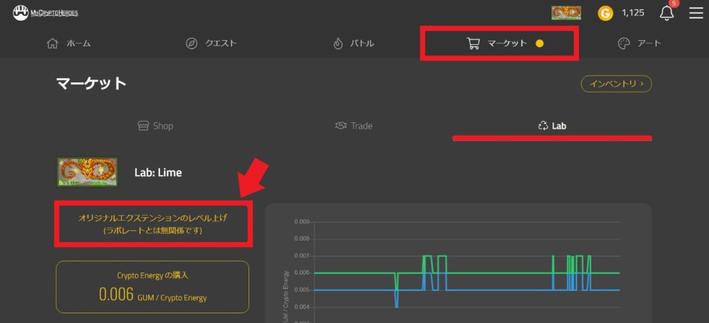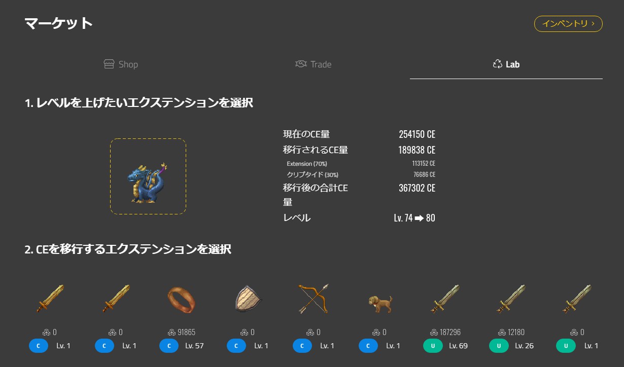 选择“Lab”后上面就会有“オリジナルエクステンションのレベル上げ(提升Original Extension的等级)”,点击之后就可以进行Exte的升级。
