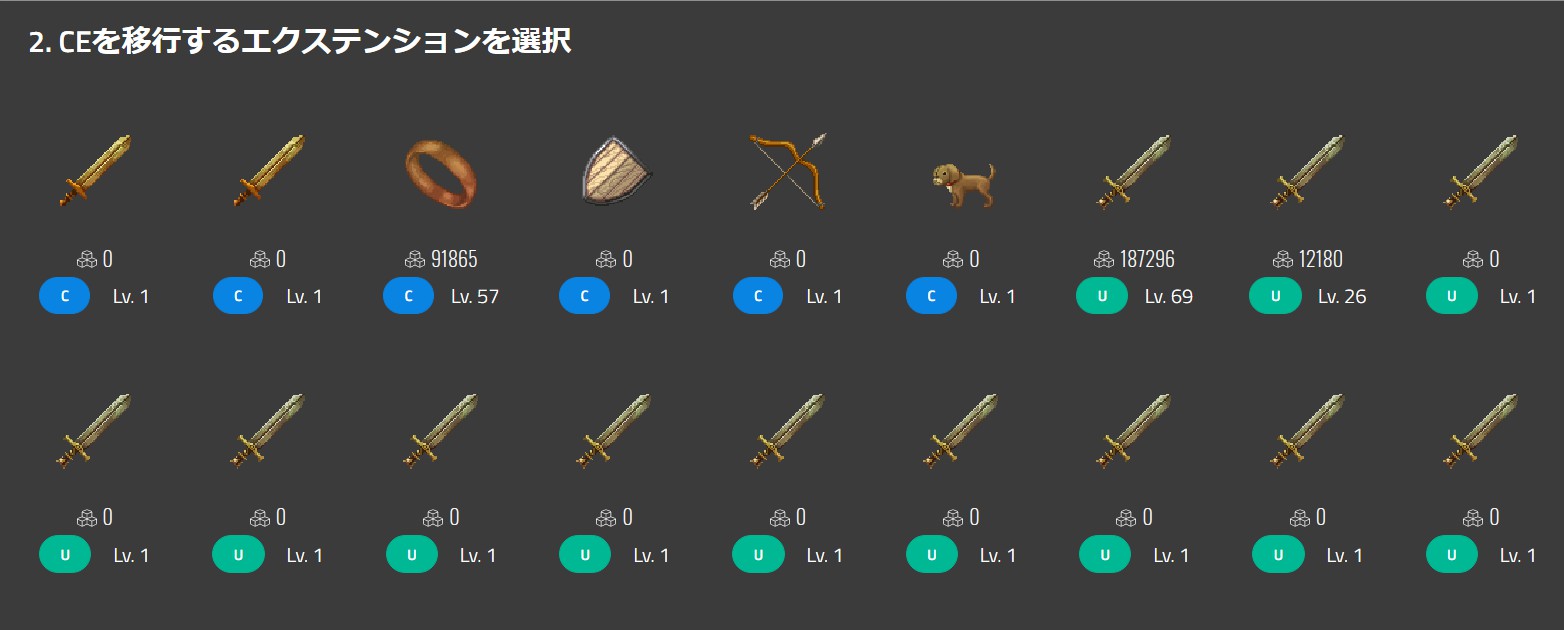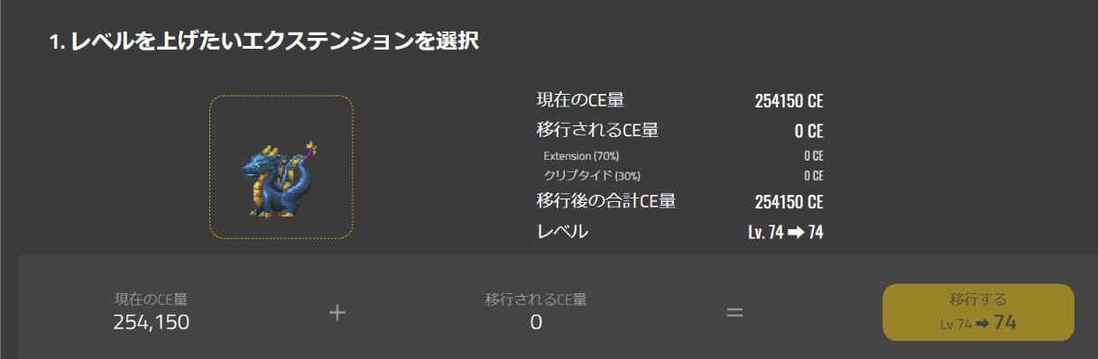没有问题了的话就点击显示着等级的“移行する”的按钮,选择OK的话就可以移动CE至指定的Extension。