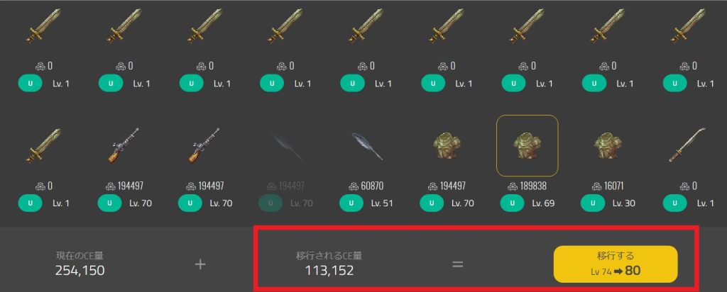 等级的变化自不必说,特别要注意的是迁移的CE量。