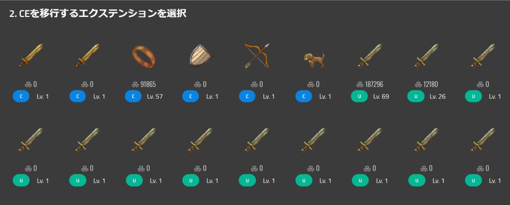 虽然在这之后会进行说明,这个被用于迁移的Extension会消失。因此,如果有很多进行迁移的道具的话就会比较浪费。