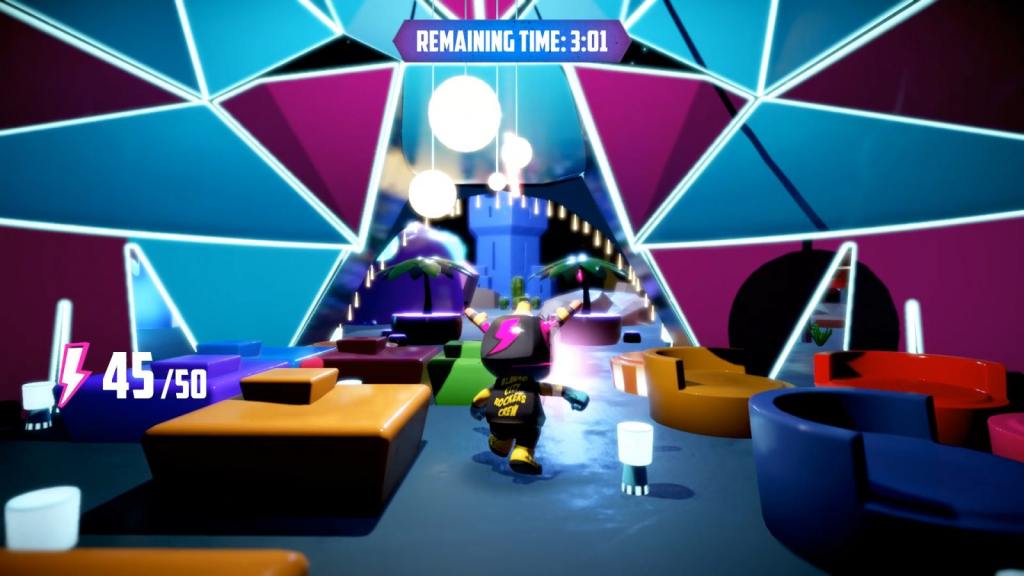 由于 《Blankos Block Party》 涉及到多人(multi-player)共同竞逐,最终呈现的结果包含玩家排名、得分以及耗时。达成过关的目标是,第一个搜集到 50 vibe 的玩家获胜。