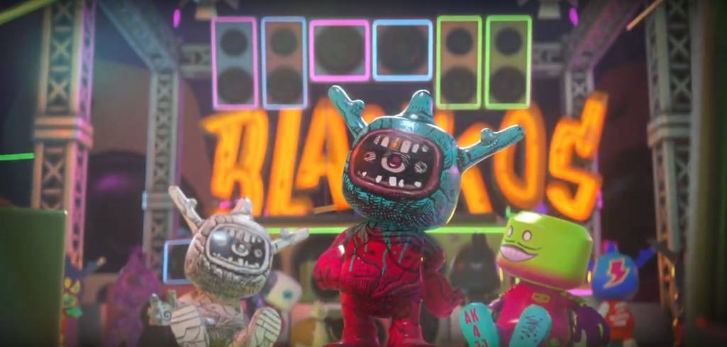 《Blankos Block Party》 的游戏场景被塑造成了一个霓虹闪耀的音乐节,有 DJ、有舞池、喧闹的扬声器设备。