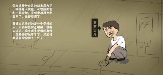 游戏里有养育孩子的所有欢乐和磨难。玩家可以在逼迫他们的数字后代获得传统的成功和让他们保留一些童真之间做出选择。他们需要为孩子提供职业指导,(勉强)忍受他们十几岁的孩子的第一次约会。所有的一切都是为了高考,也就是决定许多中国年轻人命运的竞争激烈的高等院校入学考试。
