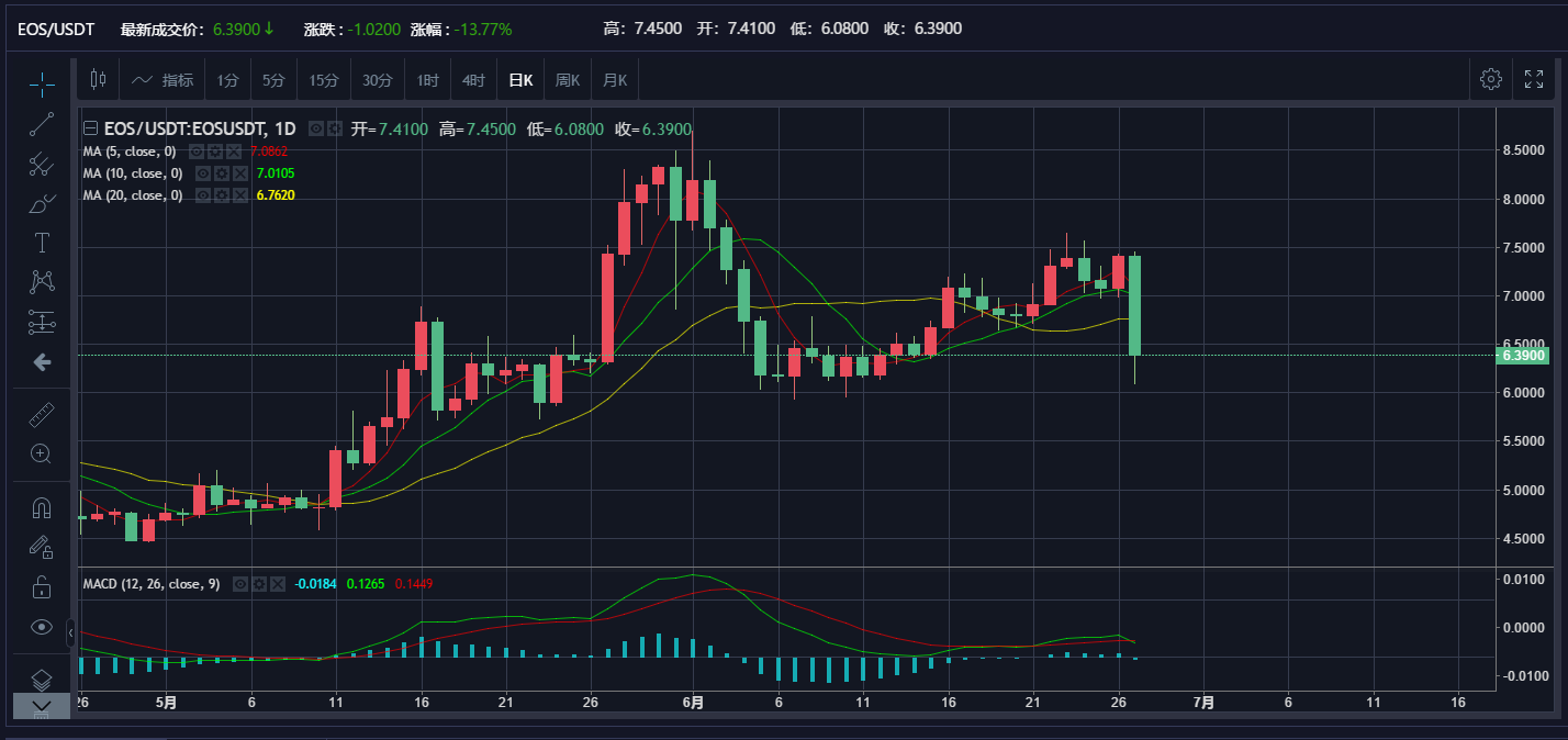 昨天提示跌破10日線減倉,eos一朝回到解放前,主力操盤手法極其惡劣,暫時不要介入了,壓力位7.0,支撐位6.0。