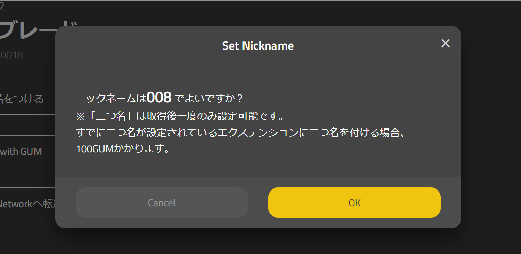 但是在变更设置好的第二名称的资产时,就需要支付100GUM。