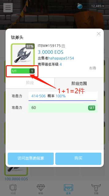那也就是说这个1级斧头是2件0.2件3EOS啊,哎呀!