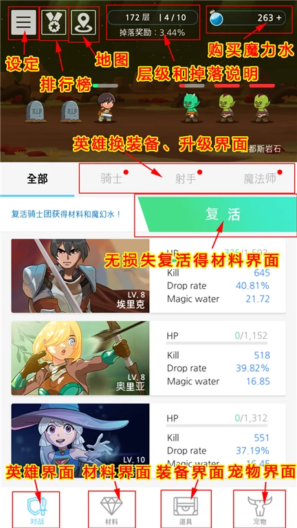 在游戏后期,英雄、装备、宠物的升级都需要大量的魔力水。