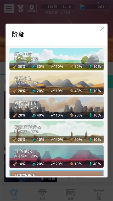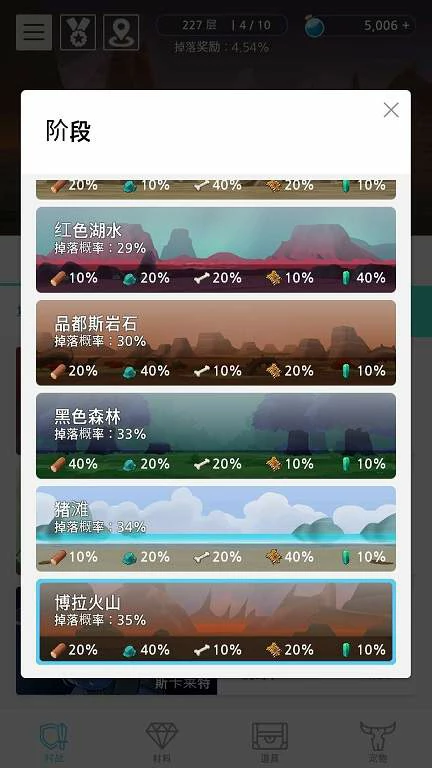 例如6级鳄鱼,83%概率掉落特殊材料;