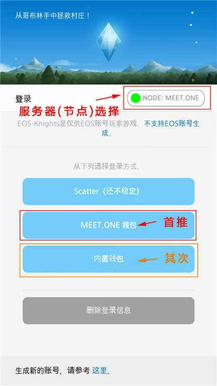 游戏三种登陆方式,基于安全首推meetone钱包授权登陆操作,其次是拥有更好体验的推荐内置钱包导入私钥(各个操作可以加入白名单,不用每次都授权。但是记住用小号,不要有太多EOS余额)。