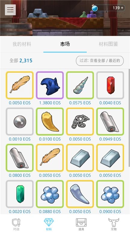 虽说简介简单,但是它不自设代币,里面所有材料装备都以EOS通过玩家之间在C2C集市自由交易。