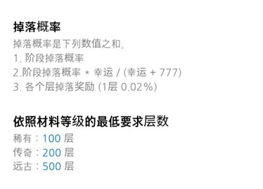 爆率=地图爆率+地图爆率*幸运/(幸运777)+各层级奖励(1个0.02%)