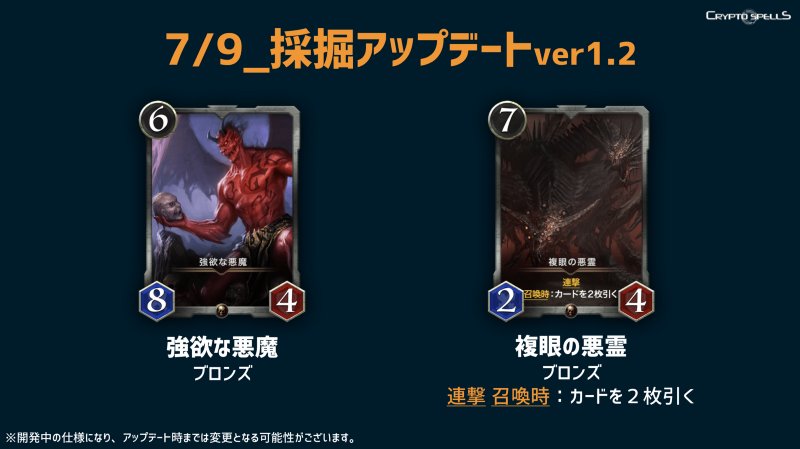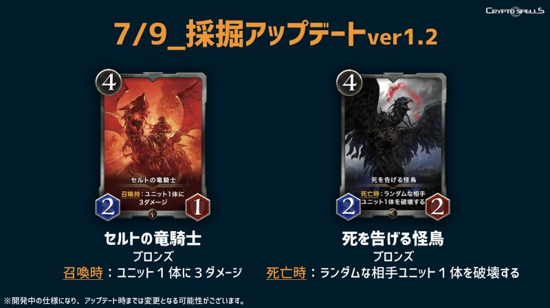 ※原本是想计划贩售的,但为了确认向游戏外发送在链上的卡牌,变更为更新挖掘。