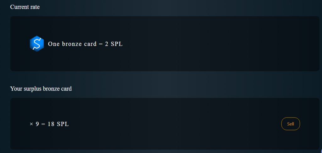 每一块铜牌的价值是2SPL,你只能大量出售剩余的铜牌。现在每个用户都有一张更高级别的卡,你就可以出售你的铜牌来获得大量 SPL,并尝试购买以获得其他玩家所拥有的更高级的稀有卡。