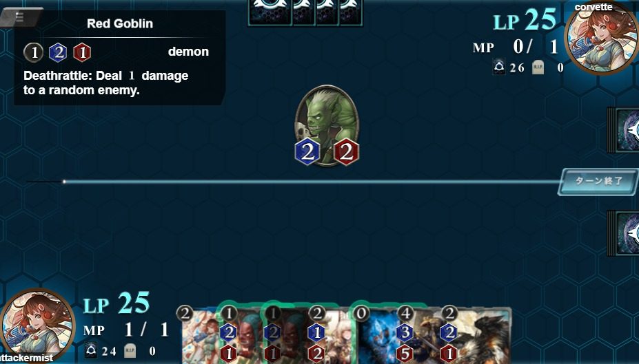 ♦ 每个玩家将会在起始拥有25生命点,当hp减到零时将输掉战斗