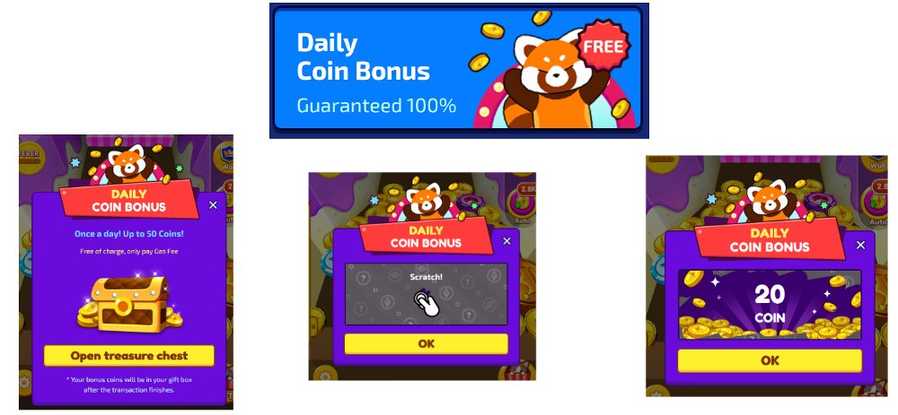 玩家只要在“My Page”页面点击每日金币图标即可领取,点开后进行刮奖,奖金最高可达50金币。每日奖金领取后会出现在礼品区,快拿去赢取ETH吧!