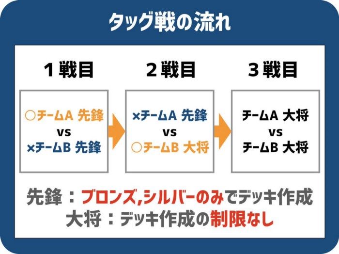 (2)小队成员由只能使用青铜和白银战斗的先锋(白银段位)和没有限制卡组战斗的大将(无段位限制)的2位玩家组成。