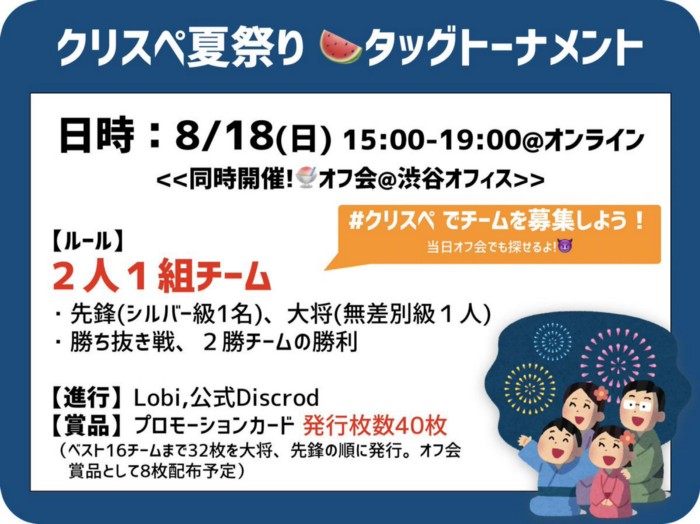 大赛开始时间:9/08/18(日) 15:00 〜(日本时间)