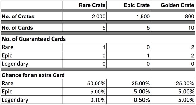 宝箱共分为三种:稀有宝箱、史诗宝箱、黄金宝箱,宝箱数量有限,分别是2000件、1500件、800件。