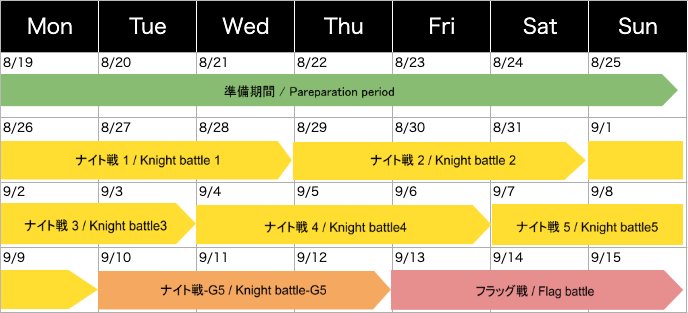 【骑士战4】9月4日 9:00 〜 9月7日 9:00