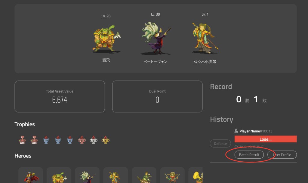 可以通过History里的“Battle Result”按钮查看决斗的各个玩家的详情画面。(除了大会结束30分钟前的“超・魔鬼时间”之外)