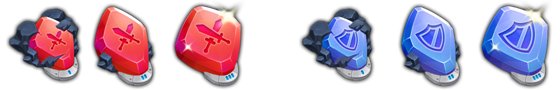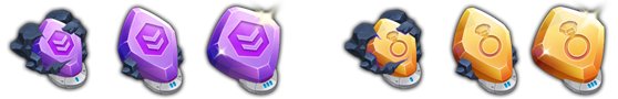 从左到右为下级/中级/上级的符文强化石、下级/中级/上级的饰品强化石。