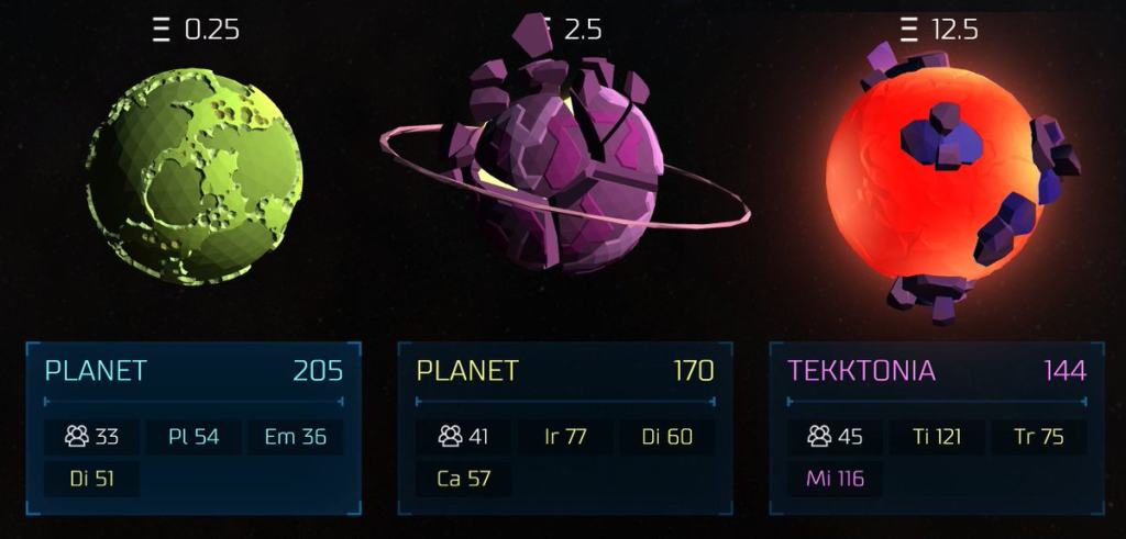 《0xUniverse》的核心是它的行星。每个行星在外观和资源种类方面都是独一无二的。稀有的行星看上去会更加美丽,资源也会更加丰富!