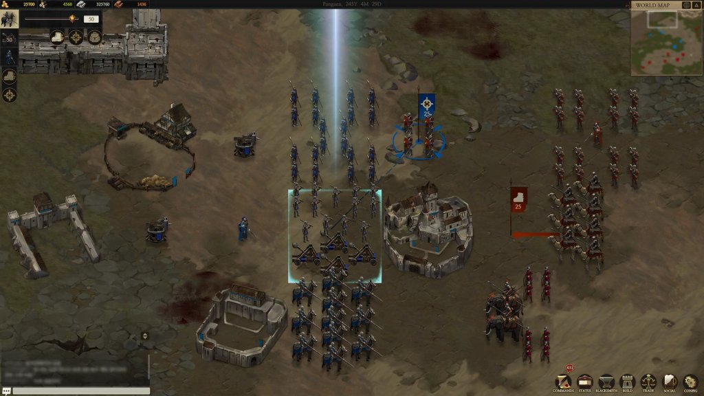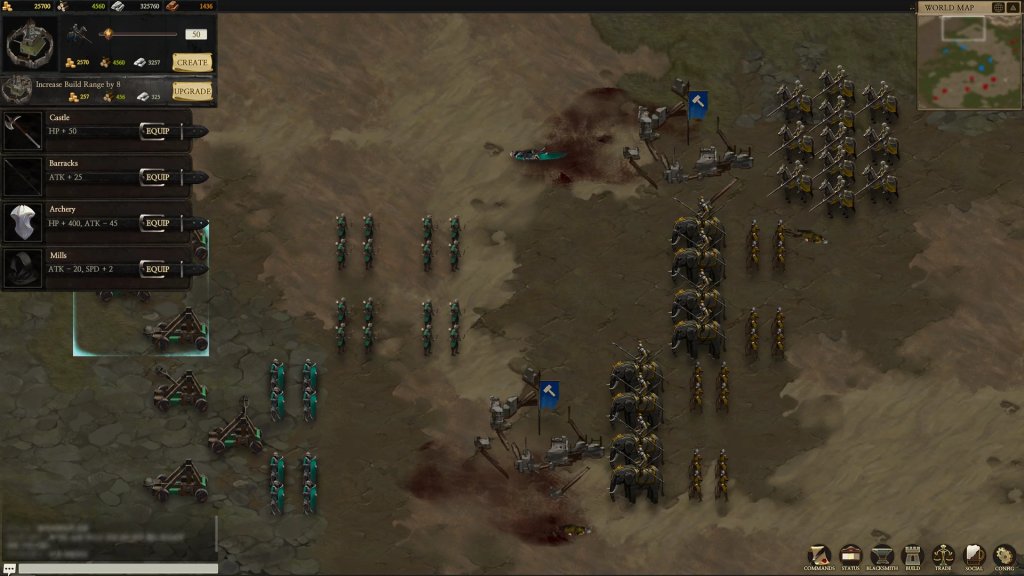 玩家可以在贸易站购买资源,然后在世界地图建造建筑物。建筑分为可以产生兵力的生产性建筑和起防守功能的防御性建筑。