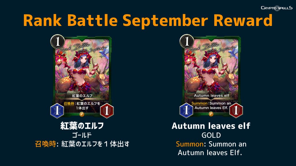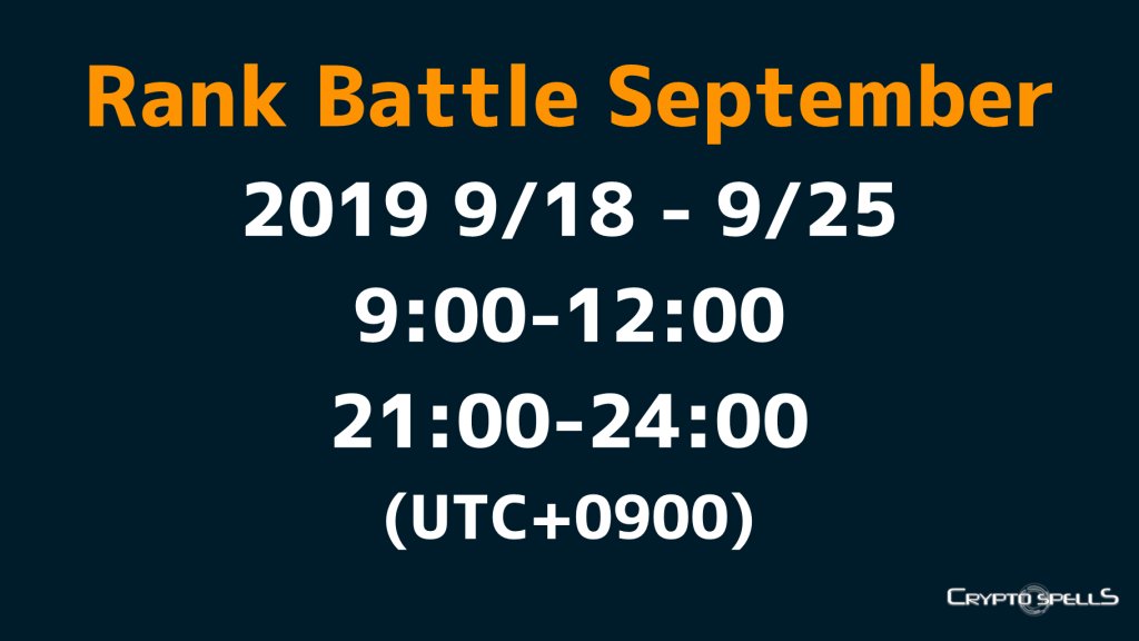区块链卡牌游戏《CryptoSpells》将于9月16日开启9月排位赛(Rank Battle September)。除了稀有卡牌奖励,还有专属称号等来你赢取!那么一起来看看具体规则吧!