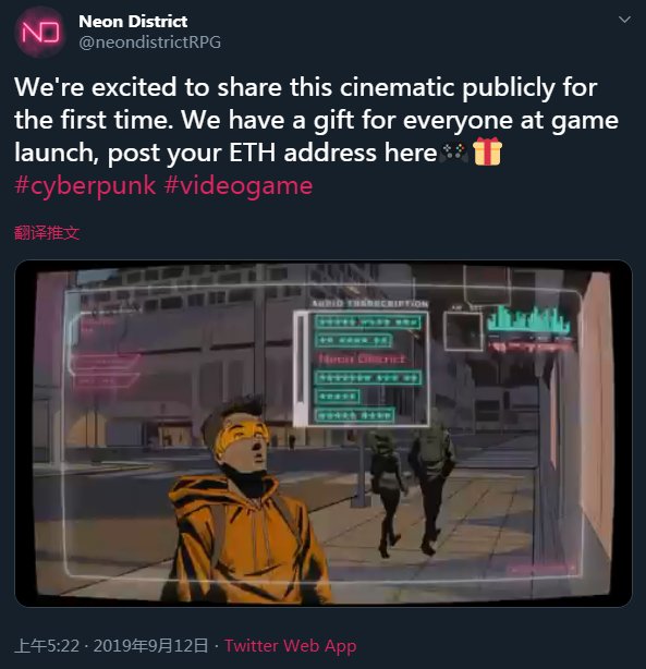 热门赛博朋克区块链游戏《Neon District》第一季发布拓展先导视频,免费赠送游戏物品!
