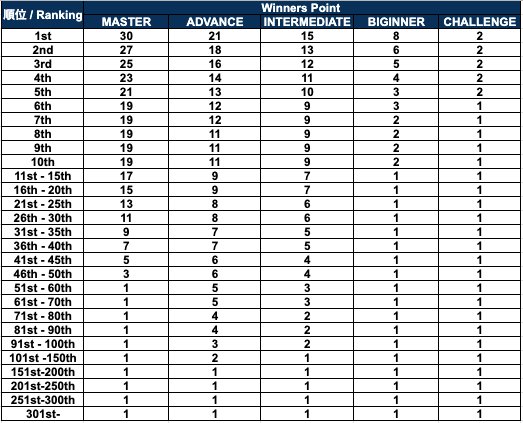 这个点数可以跨赛持有,直到2019年末为止,参加大赛的时候获得的点数会增加。(获得点数奖会在2019年末重置)