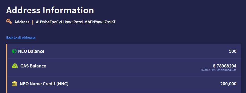 (不同用户有各自的充值地址,点击可复制,切入充入NEO和NNC以外的通证,否则将导致不可找回)