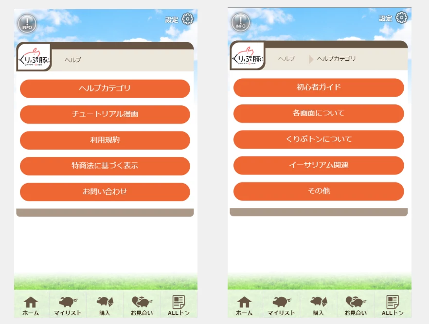 在这里可以公开买卖小猪。交易系统中,时间经过越长就越便宜,那就有可能买到物美价廉的小猪。出售时,有玩家已经预定的话,就不能再卖给其他玩家了。如果有心仪的小猪正在出售的话,要好好观察一下再购买哦。