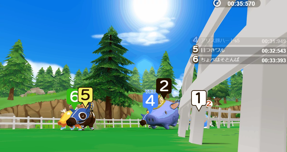 因为竞赛的小猪会消耗体力,多登录的小猪会在竞赛中更有优势。选择比赛场景和出场的小猪之后就能开始啦。竞赛大致就是利用技能跨越障碍夺得第一。