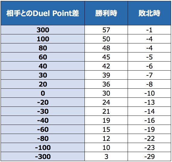 对方的决斗点差异是根据固定显示的点数计算的。(也就是说,对于相同的对战对手,其5分钟之内无论何时进行战斗,条件也不会改变)