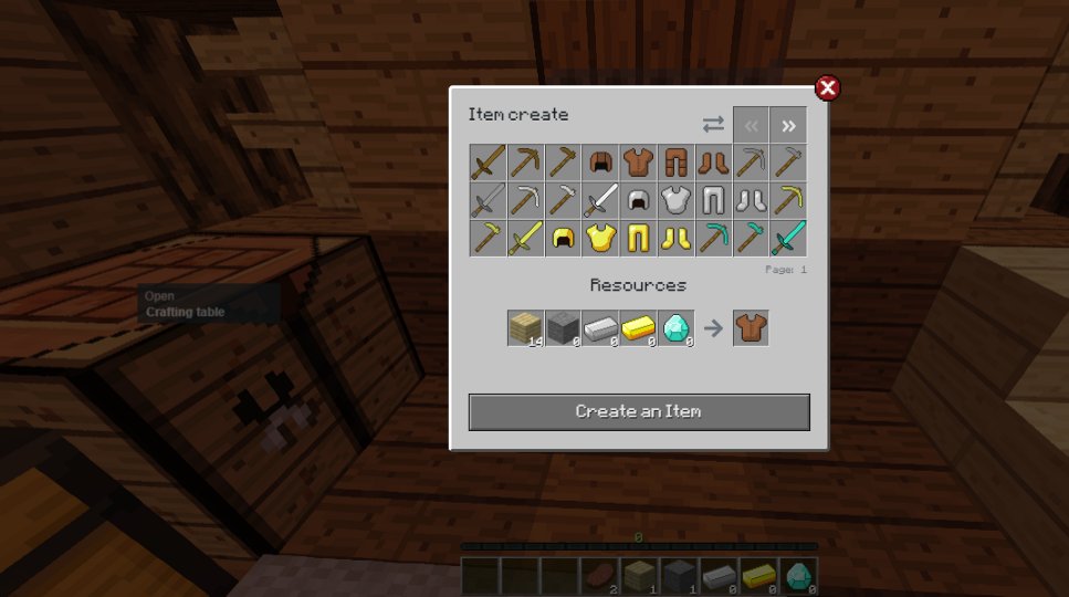 每间房屋中都有制造、升级装备的工具台。装备越高级,力量越强,所需资源、经验和Ender珍珠越多。