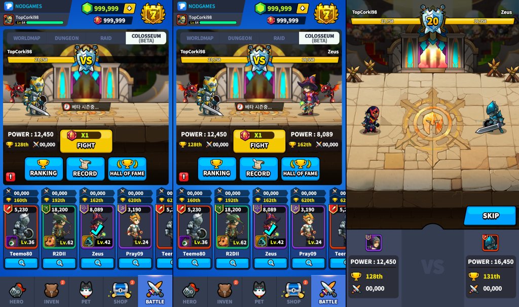 每位英雄的初始战斗点数是1000,每打败一名对手,战斗点数就会增加,反之亦然。
