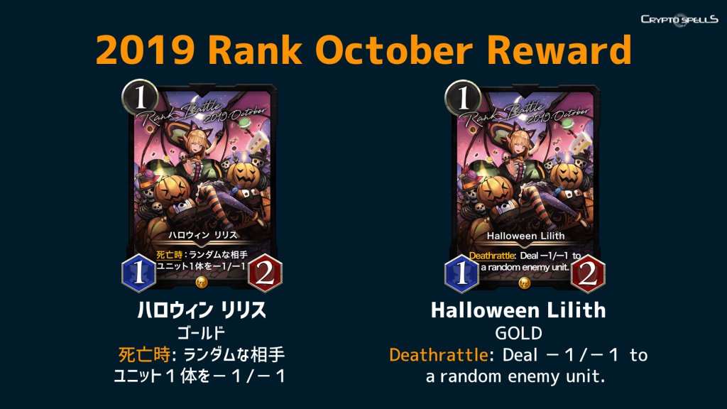 进入排位赛前100名、新手赛前10名与胜率前10名的玩家们,将获得限定卡牌【万圣节莉莉丝】
