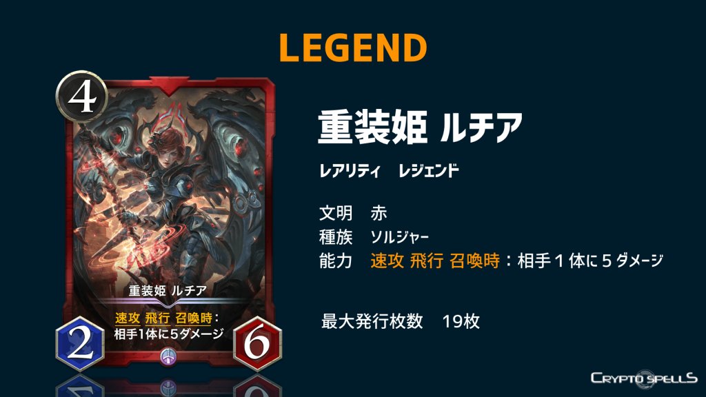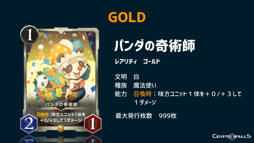 区块链游戏《Crypto Spells》11月12日新卡贩售#007开始了!这次贩售的卡牌中有LEGEND等级的重装姬露琪亚和GOLD等级的熊猫魔术师!