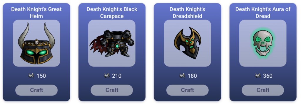 能够制作出以下4件“死亡骑士(Death Knight)”套装道具。