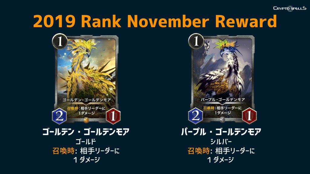 11月15日,TCG区块链游戏《CryptoSpells》11月排位战开始啦!参加排位战,赢取稀有恐鸟卡牌吧!