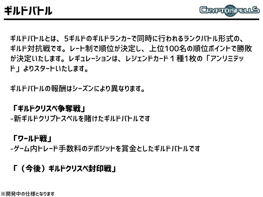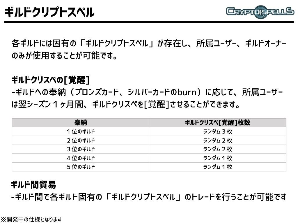 - 随着对公会的贡献(燃烧青铜和白银卡牌),公会所属成员在下一个赛季一个月内,可以进行公会CryptoSpell觉醒。